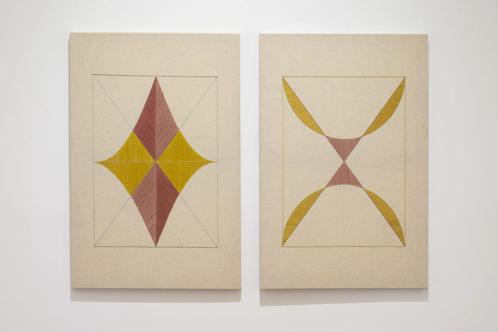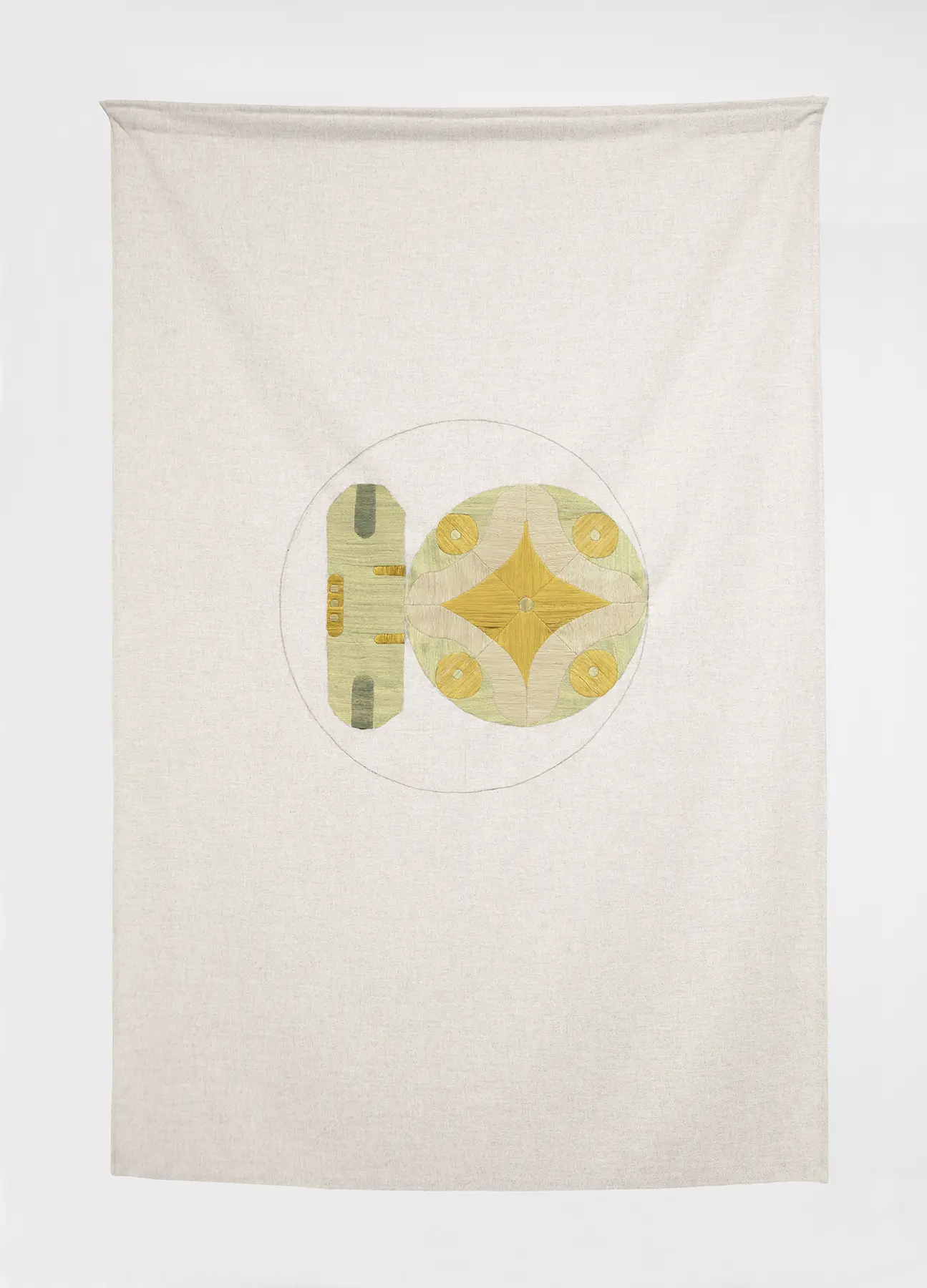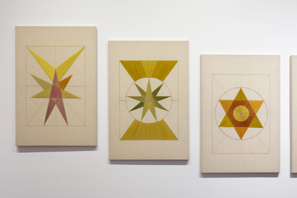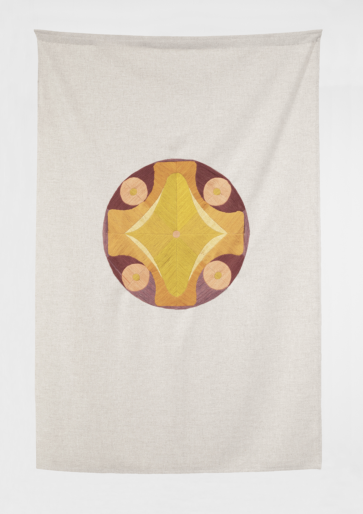Políptico de nueve bordados sobre tela e hilos teñidos a mano