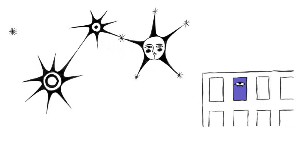 Silvia divisa el lupanar de cien ventanas en Düsseldorf. En noches muy claras, las mujeres en tregua mirarían las estrellas desde sus ventanas entre el uno y el cien. ¿Las reconocerían, de tan vistas? ¿Les servirían de orientación en los laberintos de sus sueños? Tal vez establecían conexiones o jugaban a las escondidas. ¿La escritura de las estrellas se haría más clara cuando desaparecieran, como en un poema de Marie Luise Kaschnitz?